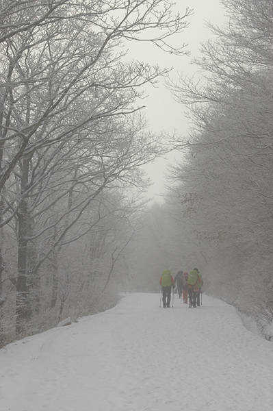 흰 눈이 내리는 날, 성삼재에서 노고단을 향하여 오르는 등산객들
