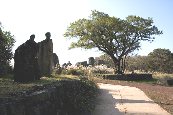 돌박물관 산책로. 사람의 모습처럼 보이는 돌과 제주의 ‘퐁낭’이 잘 어우러지는 풍경이다