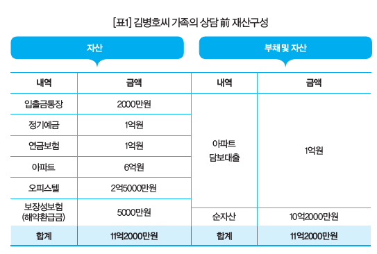 김병호씨의 경우에는 연금과 부동산 임대수익만으로도 현재의 생활비를 감당할 수 있다. 다만 고액의 치료비가 요구되는 질병이나 장기간 간병을 받아야 하는 경우가 발생하면 현재의 수입으로는 어려움을 겪을 수 있다. 고령화로 인해 갈수록 치매 등 장기간병 상태의 환자가 증가하면서 장기간병보험의 보험료가 비싸지고 있는 추세다. 김병호씨 부부가 가입한 종신보험은 1급의 장해(치매로 인하여 항상 간호를 받아야 하는 경우 포함) 상태가 되었을 때 사망보험금(1억원)을 지급하는 보험상품이다. 그리고 꼭 치매가 아니더라도 고액의 치료비가 발생한 후 사망했을 때 사망보험금이 유가족의 부담을 줄여줄 수 있기 때문에 현재의 종신보험은 계속 유지하는 것이 좋다.