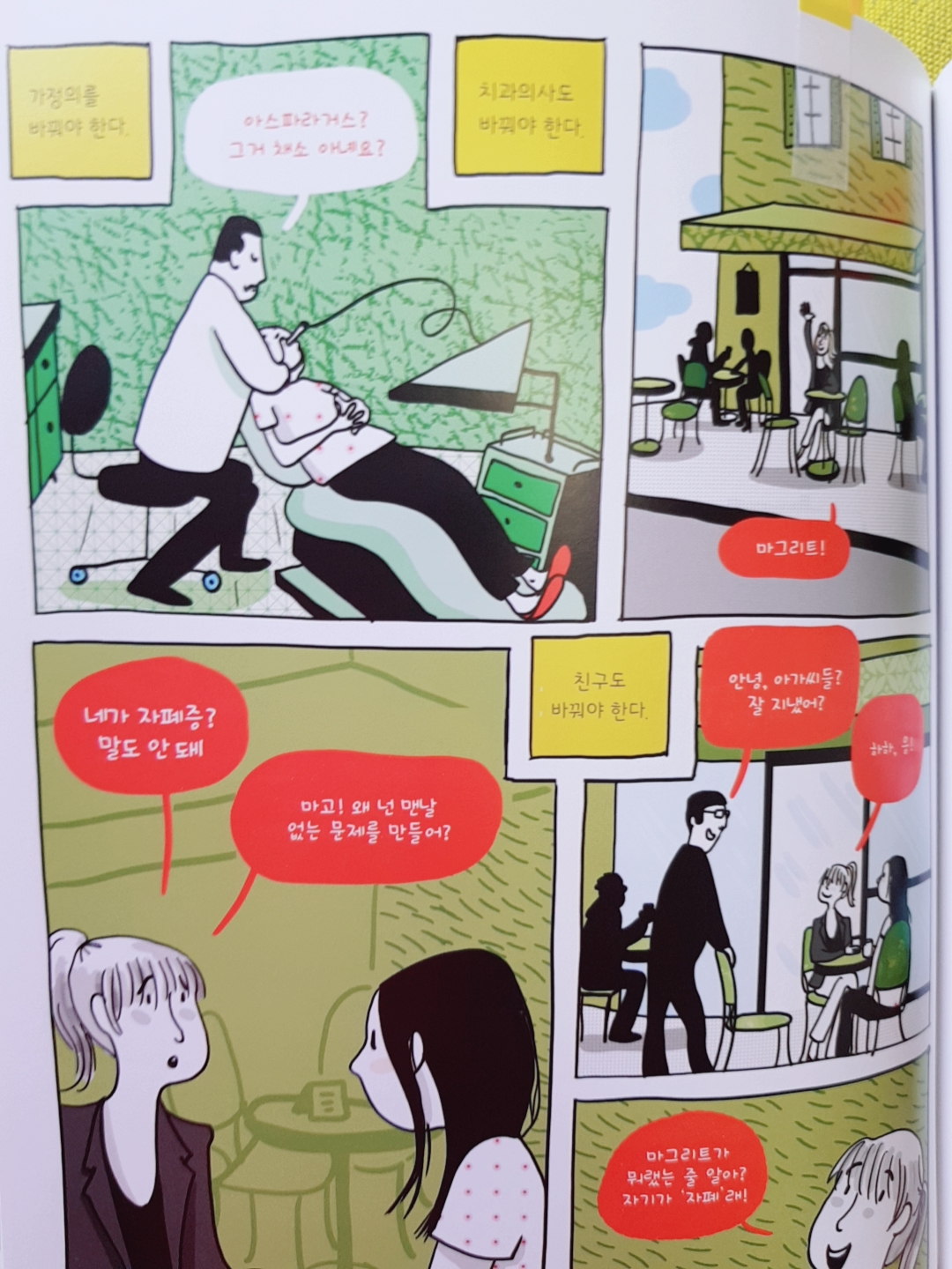 그리고 새 친구들을 사귀고 공부를 시작한다. 고기를 못 먹고 손소독제를 꼭 두 번 씩 써야 하고 정해진 곳에서만 잠들어야 하는 ‘보이지 않는 다름’을 가진 무해한 (비)정상의 사람들을. 강박장애를 가진 사람을, 커피를 못 마시는 사람들을, 여럿이서 대화를 하면 못 알아듣는 사람들 속에서 마그리트는 그제야 편안해하고 자유롭다고 느낀다.