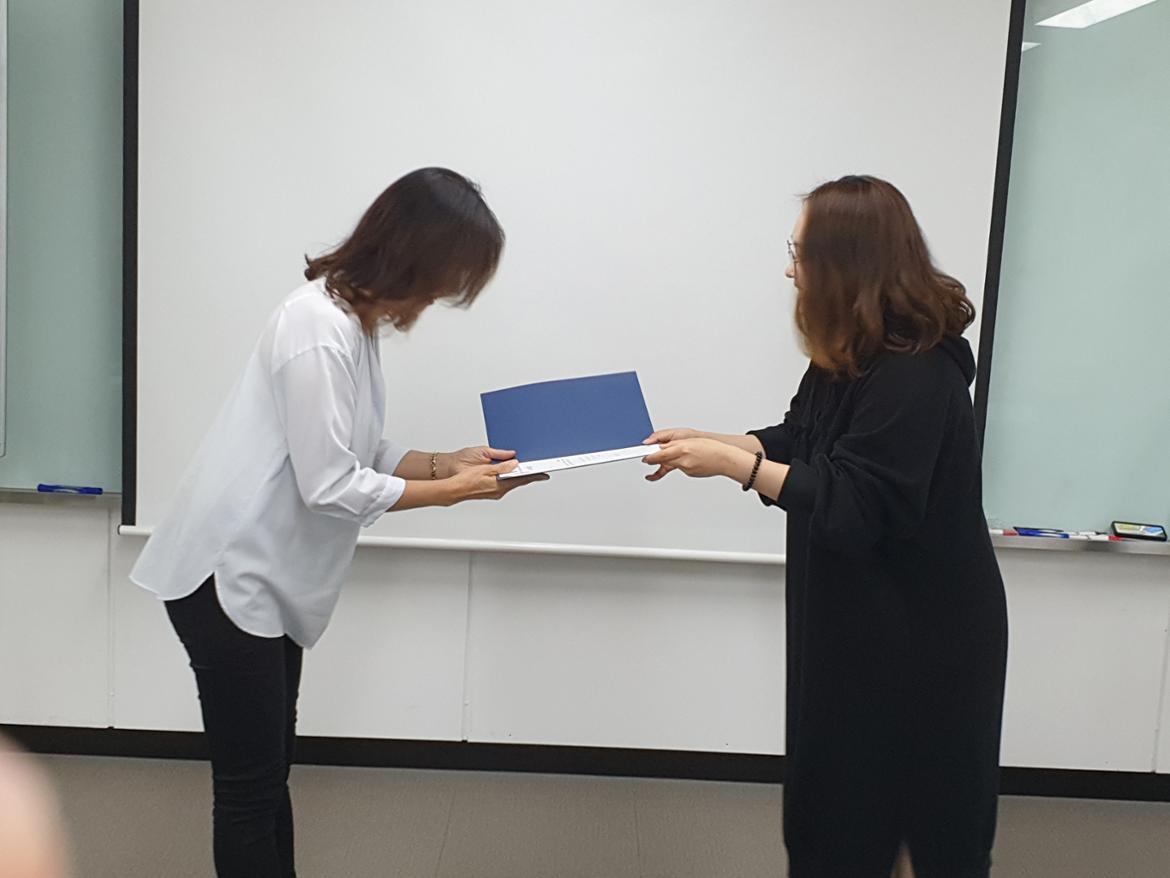 그렇게 강의실 안과 밖에서 뜻깊은 시간을 보내며 12주간의 강좌를 마치고 강사님으로부터 수료증을 받을 때는 아쉬우면서도 뿌듯했다. 글쓰기 과제를 하기 위해 하루에도 몇 시간 동안 책상에 앉았다 일어서기를 반복하는 힘든 과정이 있었지만, 글을 쓰면서 잠시나마 통증을 잊을 수 있었고, 통증 따위가 나의 삶을 무너뜨리게 내버려 두지 않겠다는 오기도 생겼다.