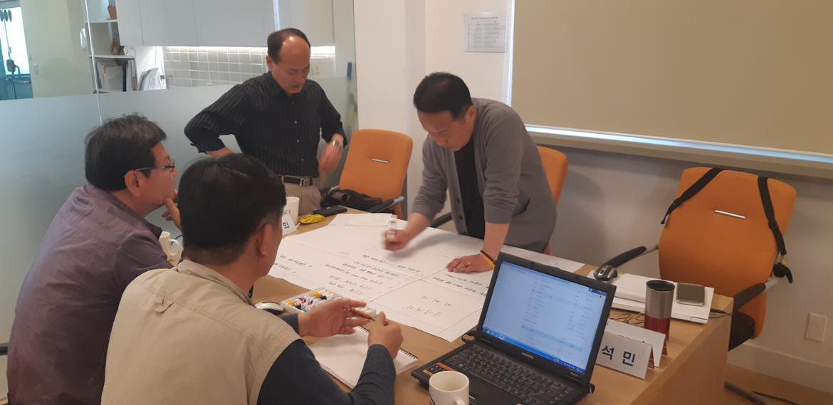 2일 차가 바로 핵심역량강화 교육에 참여할 최종 교육생을 선발하는 워크숍인데요, 보통의 1:1 또는 1:다수 형태가 아닌, ‘월드 카페 토론’ 면접방식을 통해 참여자 서로 간의 생각을 들어보고 토론하는 형식으로 운영됩니다. 조별로 총 5개의 테이블을 돌면서, 테이블별 주제에 대해 토론하고 이야기를 나눕니다. 내 또래의 동료들이 취업을 위해 어떤 준비를 하고 있고, 어떤 생각하고 있는지 들어볼 수 있는 소중한 시간이기도 합니다. 현재 코로나 19로  인해 대면 워크숍을 진행할 수 없어 너무 안타까워요.
