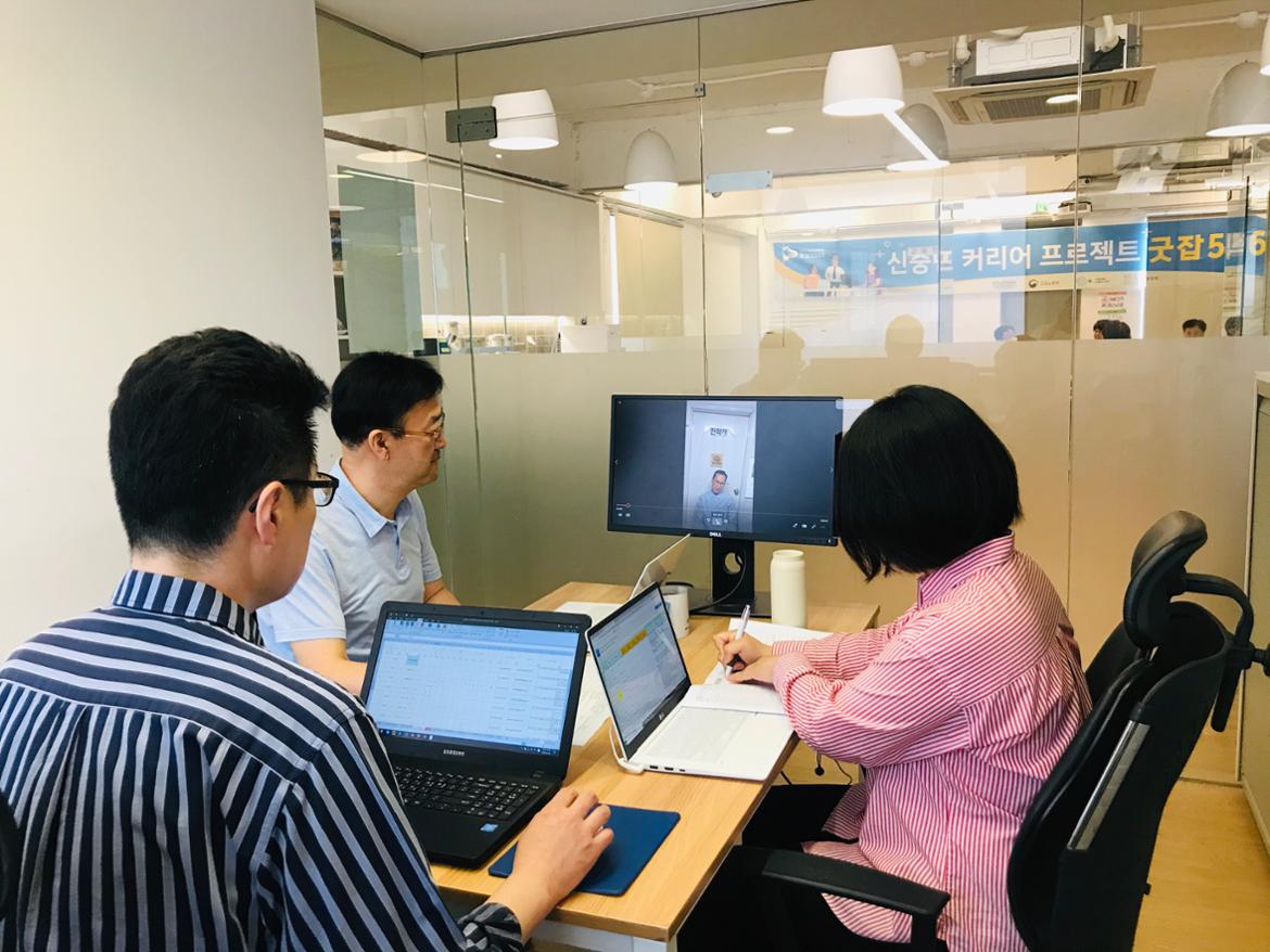 신지연 PM: 교육 이후에도 정보와 모임, 활동이 연계될 수 있도록 안내드리고 있습니다. 몇 가지 소개를 드리면 동문 네트워킹을 통해 취업한 선배들과의 만남이나 금융직 동문과의 만남을 통해 취업 정보와 공감대를 나누고, 커리어십프로젝트를 통해 굿잡 5060 수료생과 사회적 기업 및 스타트업이 매칭되어 기업의 당면한 과제에 대해 5주 동안 직접 솔루션을 만들어 실행도 해보고, 세미나를 개최하여 취업 전략과 트렌드를 안내하며 또 동영상 자기소개서 제작, 심화 교육 등도 진행됩니다.
