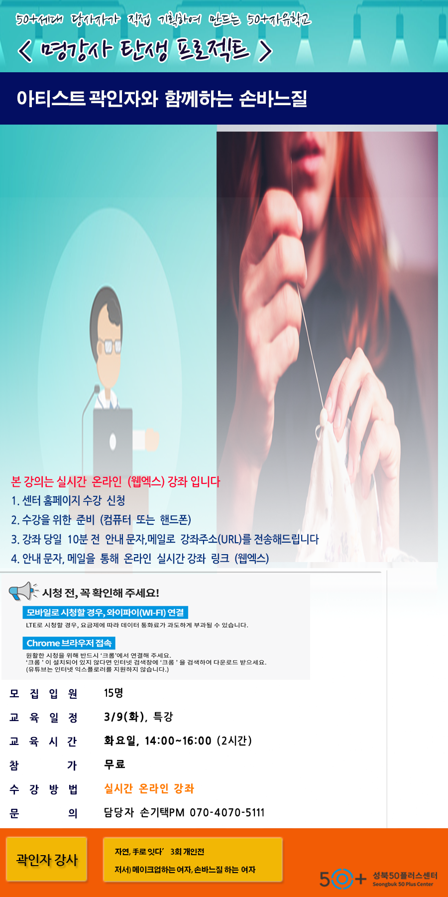 [50+자유학교] 아티스트 곽인자와 함께하는 손바느질 '자연, 手로 잇다'