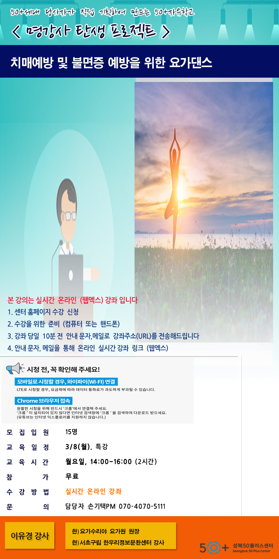[50+자유학교] 치매예방 및 불면증 예방을 위한 요가댄스