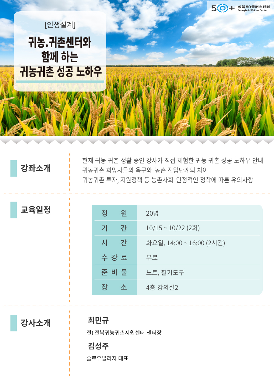 (1 회차) 2019.10.15(14:00 ~ 16:00) 4층 강의실2 최민규 귀농귀촌정책 및 귀농귀촌 준비시 주의할 점(실패사례, 성공사례) 노트, 필기도구